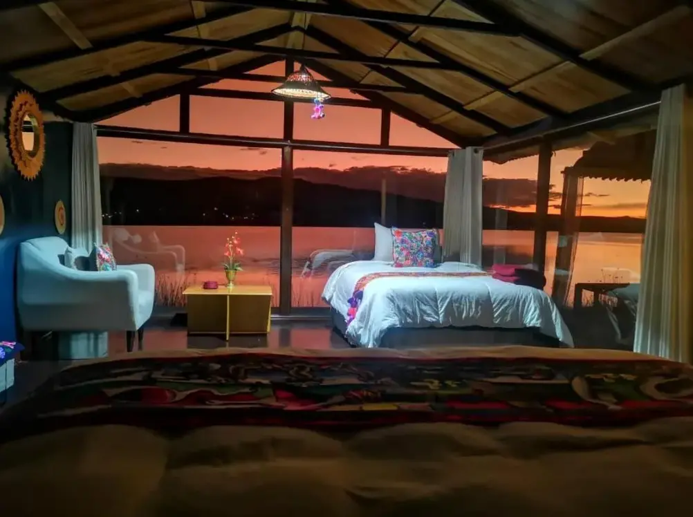 Amalia Titicaca Lodge befindet sich auf einer Uros-Insel in der Region Puno, Peru. Die Unterkunft verfügt über Frühstück, Zimmerservice, ein Restaurant und einen Flughafenshuttle. Gäste loben die einzigartige Lage direkt am Seeufer sowie die gastfreundliche Atmosphäre. Der Gastgeber Juan sorgt für informative Gespräche zur lokalen Kultur und Traditionen der Uros-Völker. Das Essen wird von den Gästen positiv bewertet und gilt als hervorragend zubereitet. Aufgrund der abgelegenen Lage sind einige Ausflüge erforderlich, doch die Nähe zum See ermöglicht Wanderungen oder Bootsfahrten. Die Unterkunft bietet zusätzlichen Komfort durch Heizgeräte und warme Decken bei kühlenden Nächten.